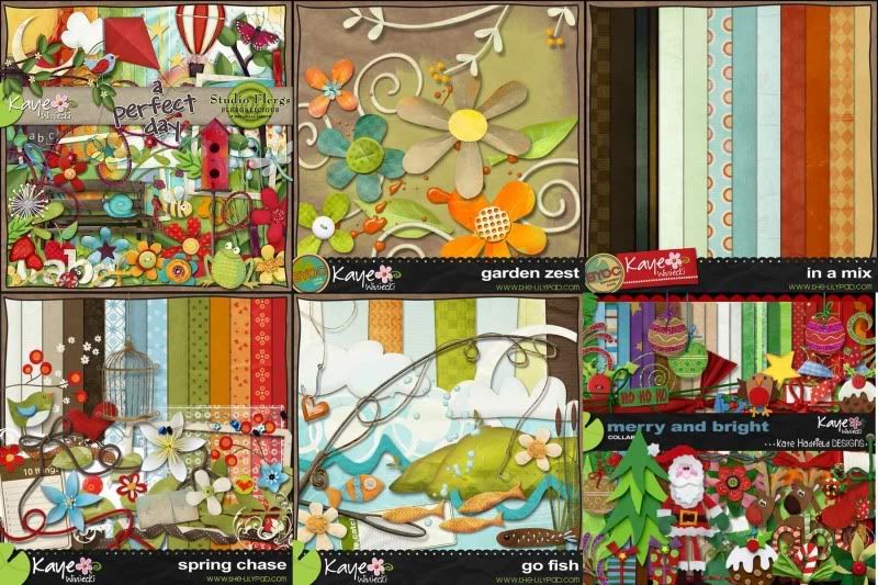 It also means that I could stay inside all weekend and play at The LilyPad's 3rd Birthday Bash! The ladies over there are lots of fun! I even won a couple gift cards during the Saturday evening chat - to Valorie Wibbens (Spotted Dog Designs) and Amy Sumrall. Can't wait to get some new goodies from both of them. But in the meantime, I picked up a TON of new stuff from Kaye Winiecki at The LilyPad's 30% off sale. Right now Kaye and Kristin Rice (K Studio) are my two new favorite designers of digi products. Here's what I got: